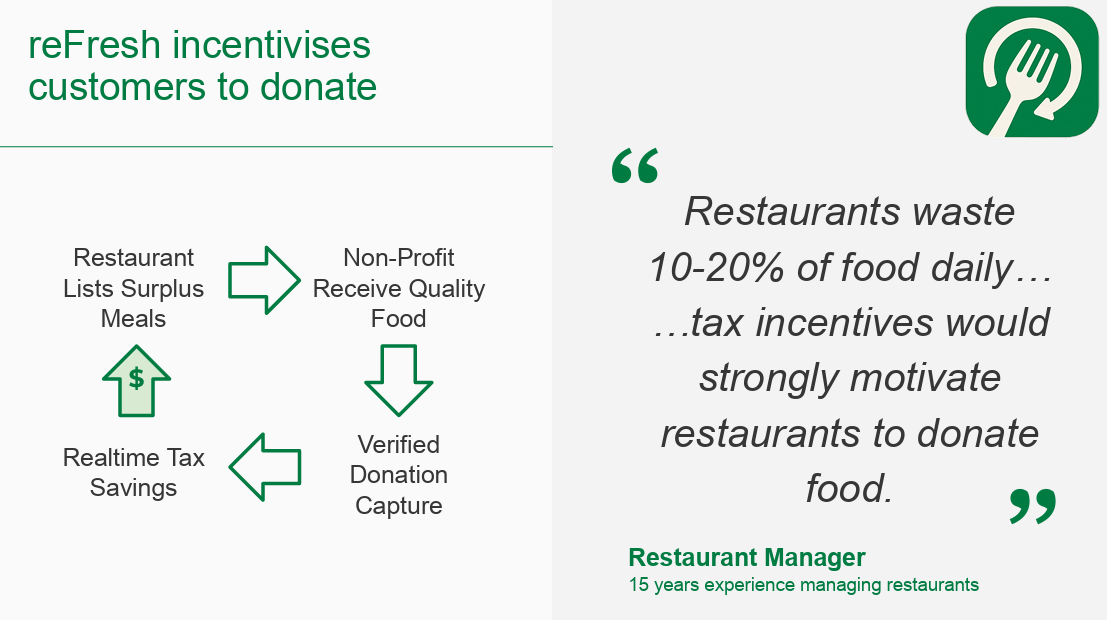 - Worked with team of MBA students to create commercialization strategy for reFresh, a restaurant-to-nonprofit food waste reduction platform